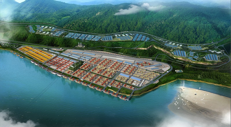 港区板块:占地2100亩,估算总投资72亿元。以高压铁塔为界,上游为集装箱装卸作业区,下游为件散货装卸作业区。规划利用岸线3300米,规划建设5000吨级泊位20个(其中:多用途泊位16个、散货泊位4个),设计年通过能力3000万吨,其中集装箱150万标箱,件杂货500万吨,散货1000万吨。港区龙头港装卸货种以集装箱为主,件杂货和散货为辅。件杂货主要为钢材、水泥与建材、化肥、药品、机械设备等,散货主要为矿石、粮食、煤炭等。计划分5期建设,其中一期工程2017年5月建成投用,累计完成集装箱装卸约1.1万标箱,件杂、散货装卸约50万吨;二期工程5#、6#泊位水工建筑物部分于2017年6月开工建设,计划今年完成主体工程。