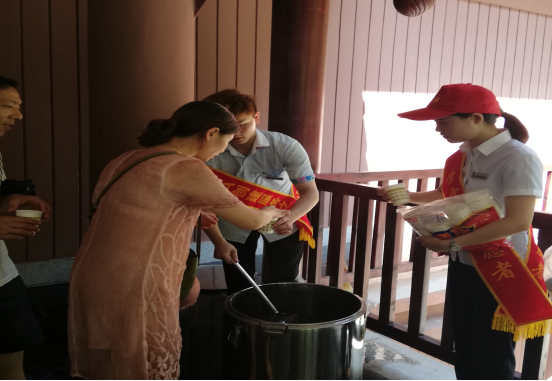 (▲图为武陵山大裂谷景区志愿者为游客送免费凉茶)