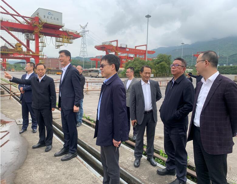 2021年4月16日下午,国家开发银行重庆分行行长李建江一行调研龙头港。涪陵区政府副区长钟涛、交旅集团、国投集团相关领导同志陪同调研。